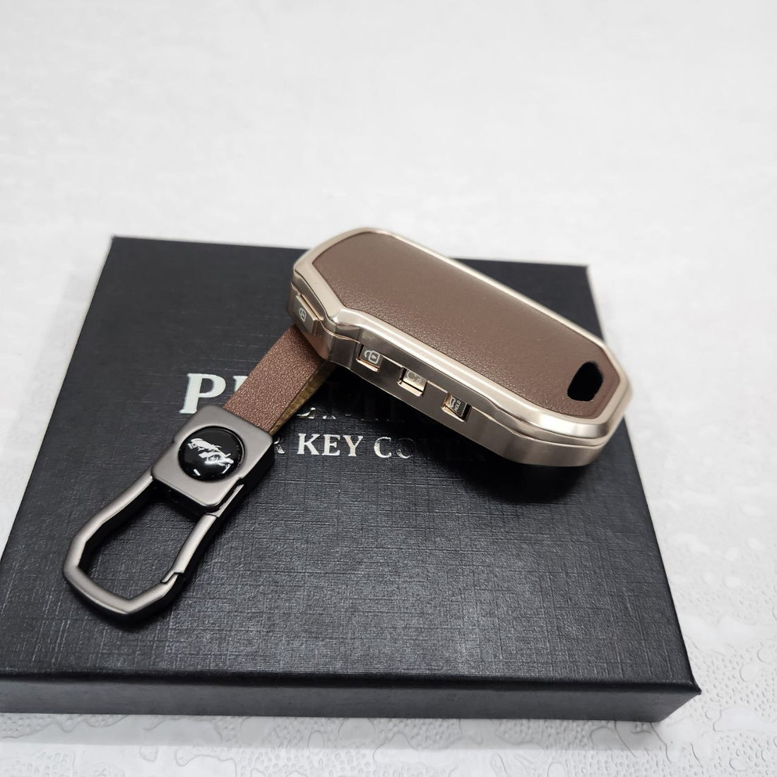 Ford New Keyless (3 Button Key) Exclusive Aluminium Alloy Leather 2.0 Keycase with Holder & Rope Chain