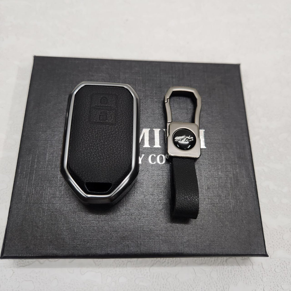 Suzuki Swift/Baleno/Ignis 2 Button Key Exclusive Aluminium Alloy Leather Keycase with Holder & Rope Chain