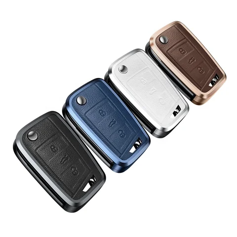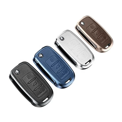 Skoda/Volkswagen New Flip Key Exclusive Aluminium Alloy Leather Keycase with Holder & Rope Chain