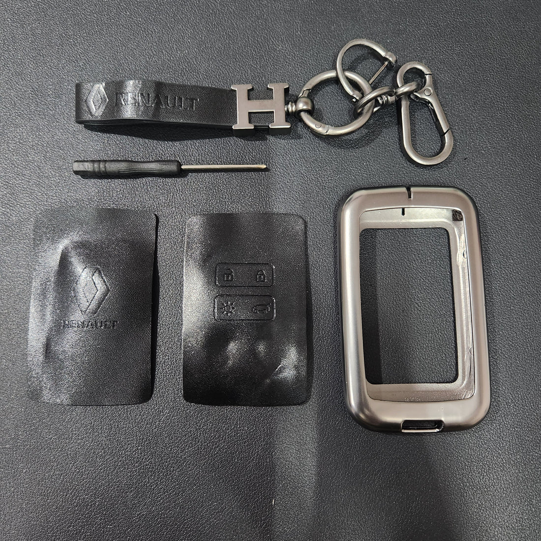 Renault New Key Metal Alloy Leather Keycase with Holder & Rope Chain