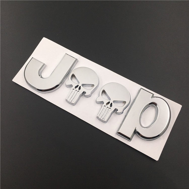 3D Jeep Skull Metal Sticker Decal Silver (13x4.5 cm)