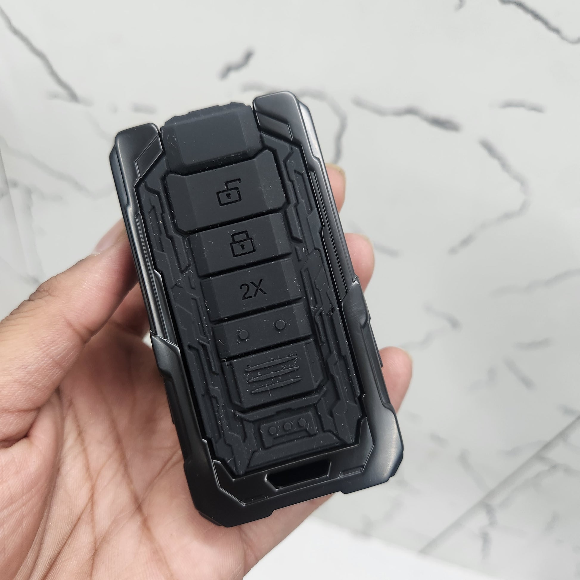Our keycases are crafted from high-quality alloy, ensuring durability, protection, and a sleek finish. Some models also feature leather or carbon fiber accents for added style.