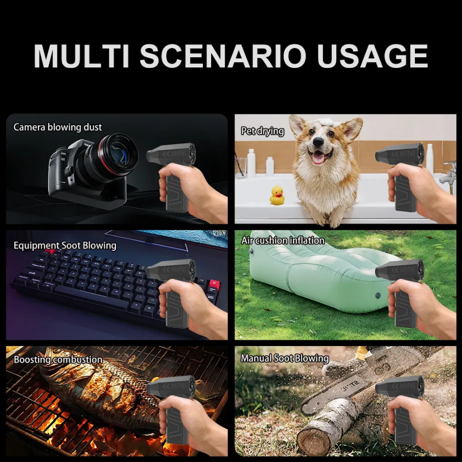 1. High-Quality Bearings and Blades: The mini turbo jet fan features high-speed bearings and 13 CNC-machined stainless steel blades, generating over 52 meters/second of pressure and speed for powerful performance.