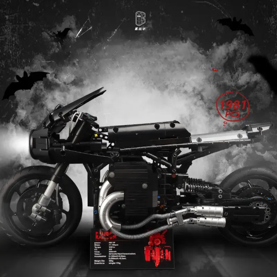 Batman BatCycle Dark Knight 1981 Technique Version 1981Pcs, 1:5 Scale Building Blocks Bike