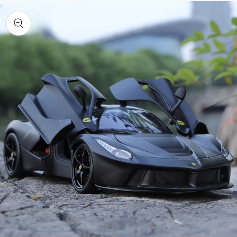 LaFerrari is the flagship super sports car launched by Ferrari. LaFerrari's superior performance, aerodynamic efficiency and handling set a new benchmark for super sports cars; Automotive model 1:18 ratio, high quality zinc alloy body, plastic chassis, rubber tires, exquisite interior, simulation design, realistic shape; Manually push the model car to make the model car drive forward through inertia; The steering wheel can control the front wheel steering, the front cover and the back cover can be opened, and the left and right doors can be opened. Ferrari LaFerrari model car, can be used for collection, or as a gift to friends or family, can also be used for home or car decoration