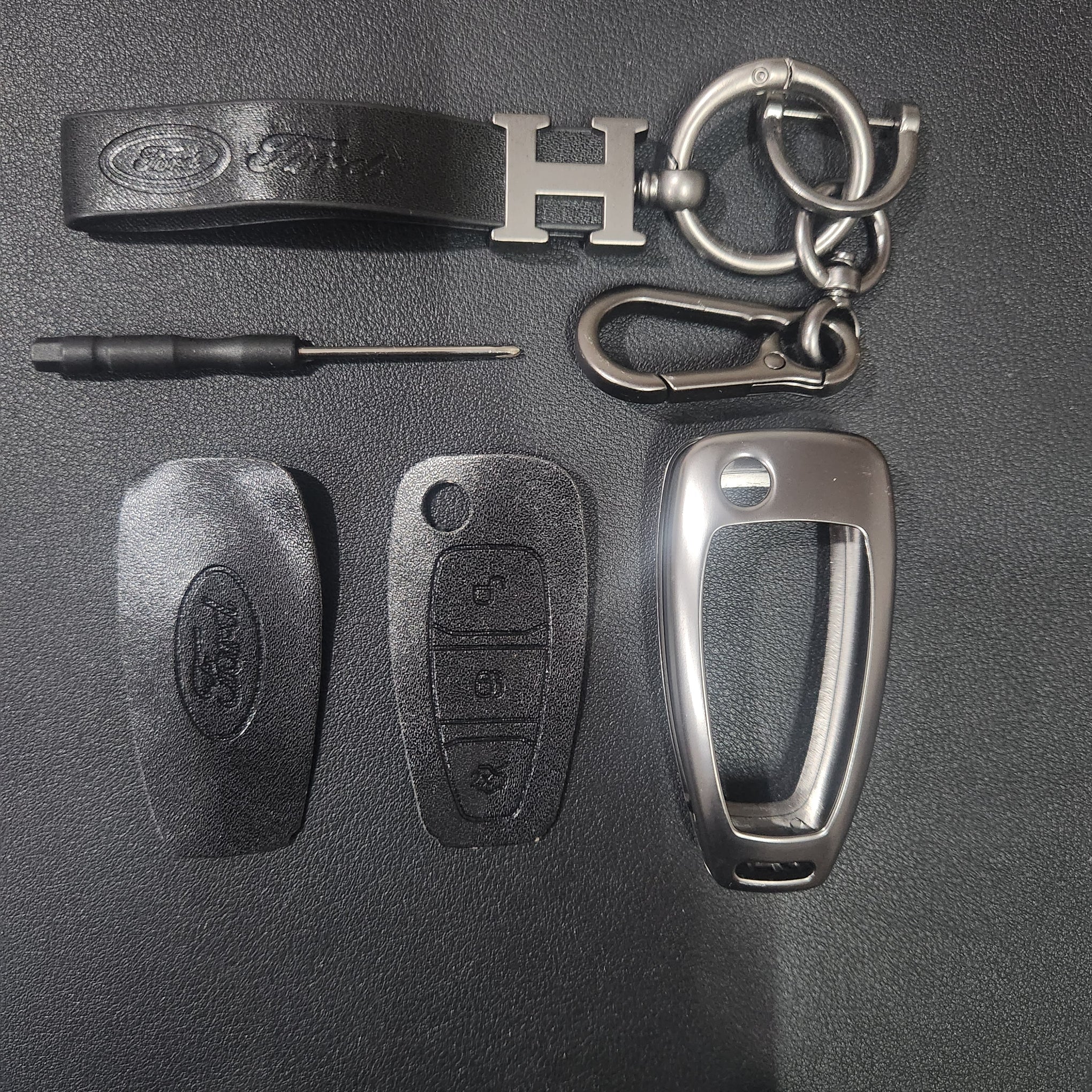 Ford Ecosport Flip Key Luxury Metal Alloy Leather Keycase with Holder & Rope Chain