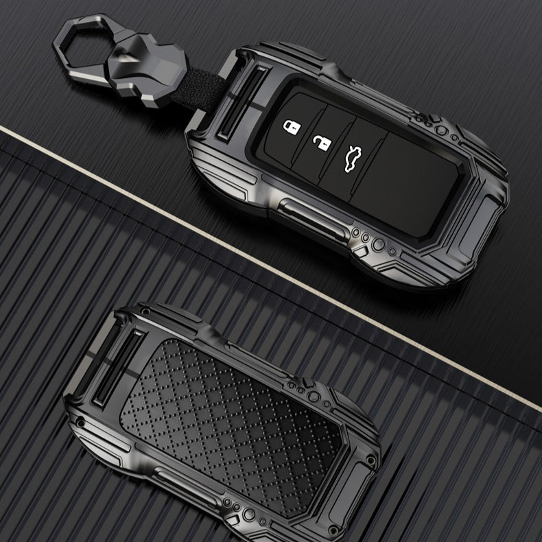 Our keycases are crafted from high-quality alloy, ensuring durability, protection, and a sleek finish. Some models also feature leather or carbon fiber accents for added style.