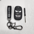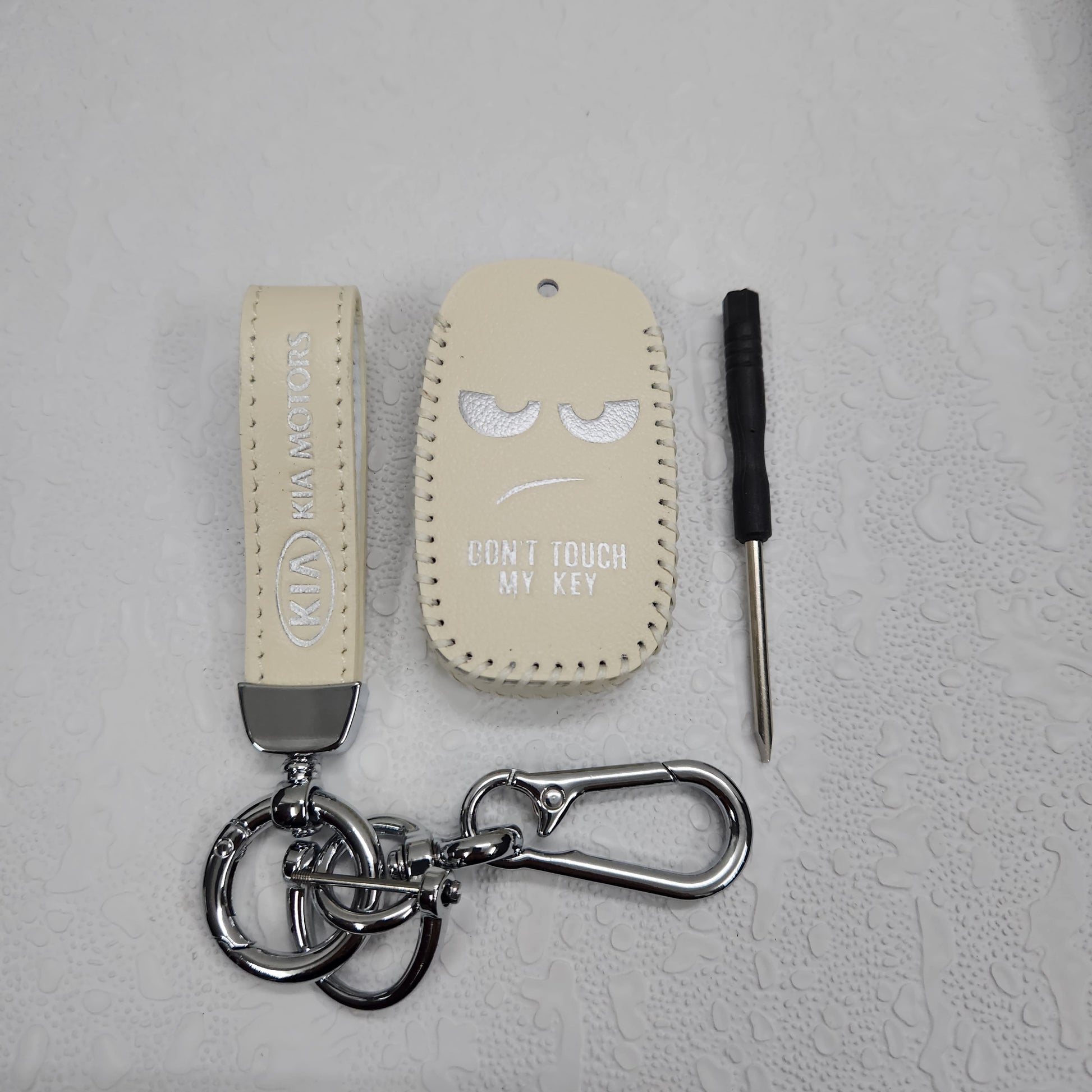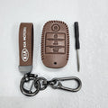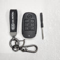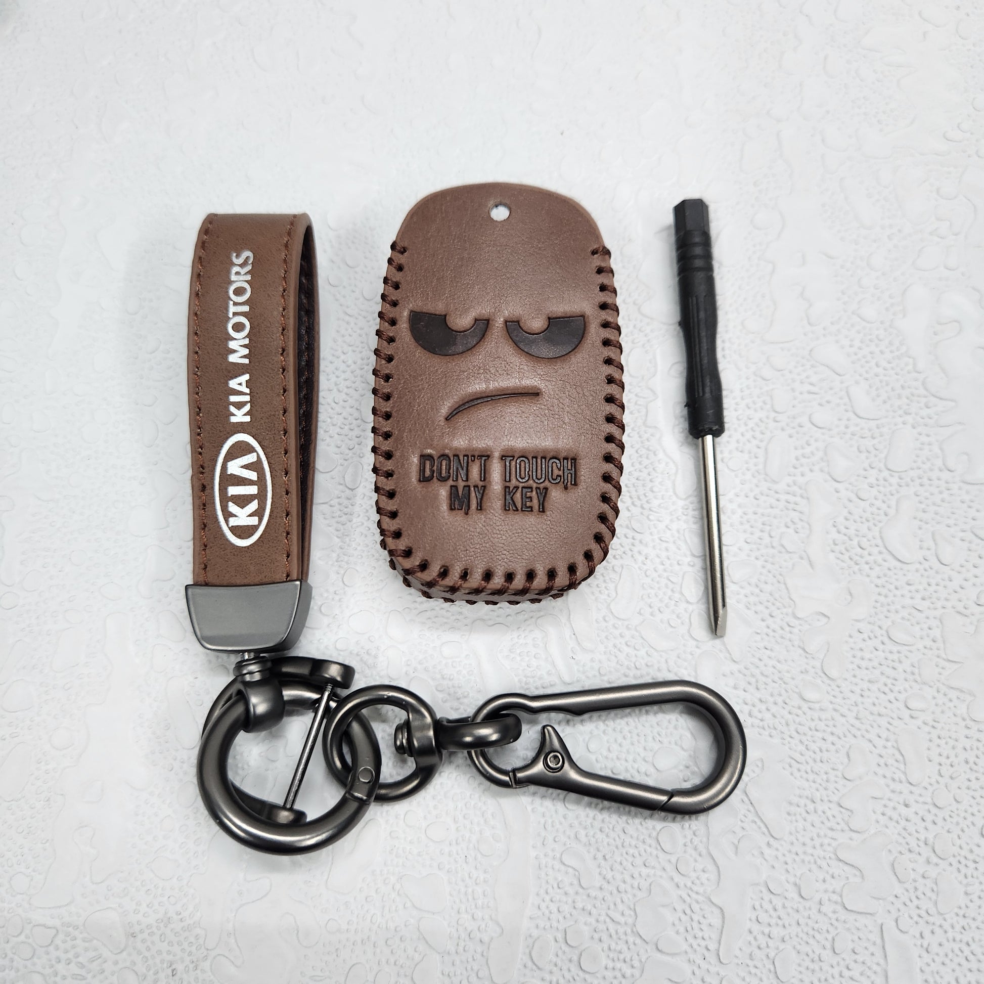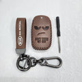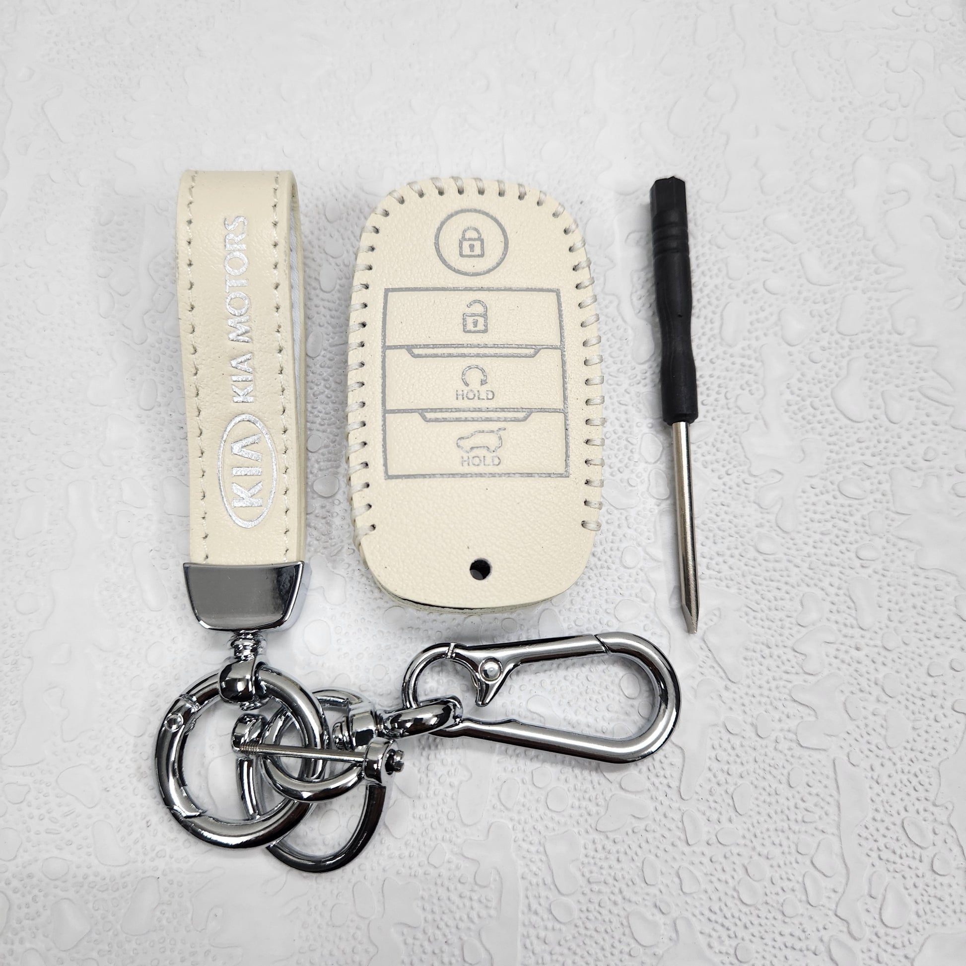 Kia Seltos/Sonet 4 Button Key Luxury Pure Handmade Oilwax Leather Keycase with Logo, Caption, Hook, and Chain