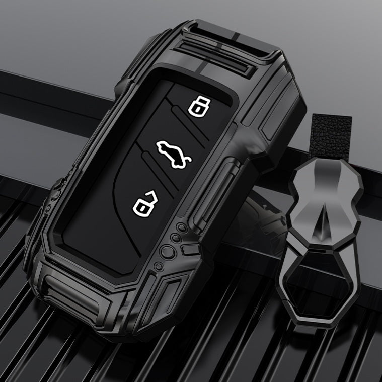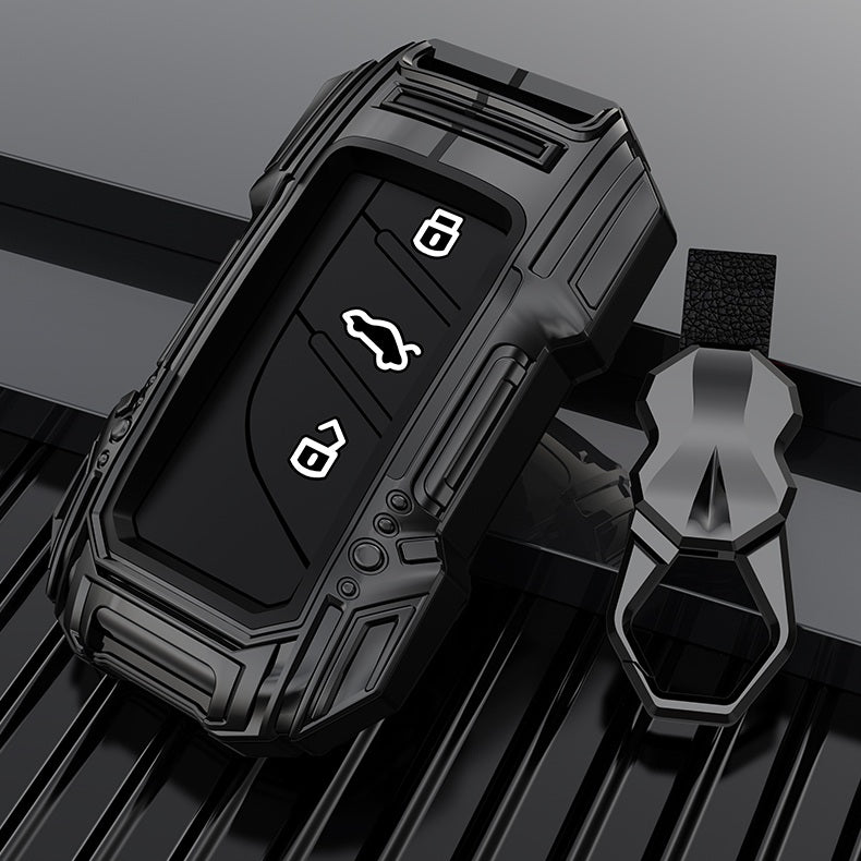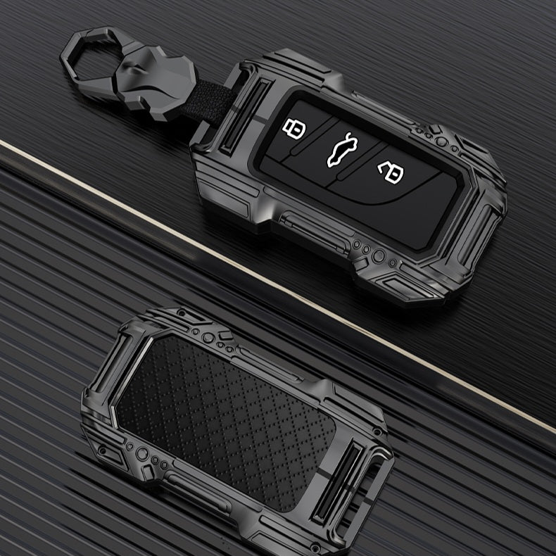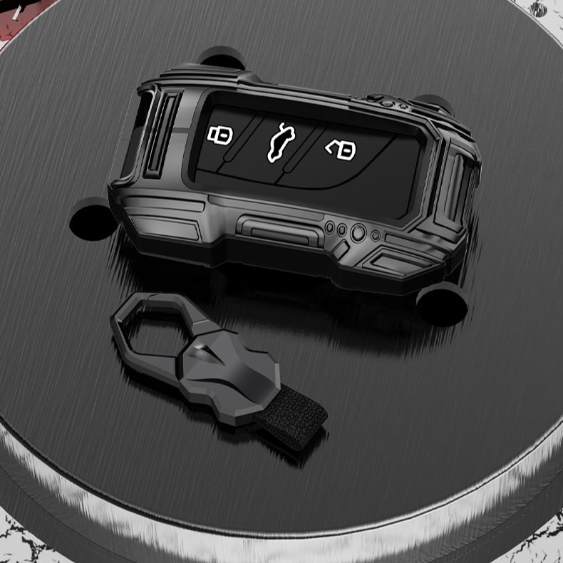 Our keycases are crafted from high-quality alloy, ensuring durability, protection, and a sleek finish. Some models also feature leather or carbon fiber accents for added style.