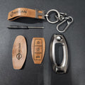 Our keycases are crafted from high-quality alloy, ensuring durability, protection, and a sleek finish. Some models also feature leather or carbon fiber accents for added style.