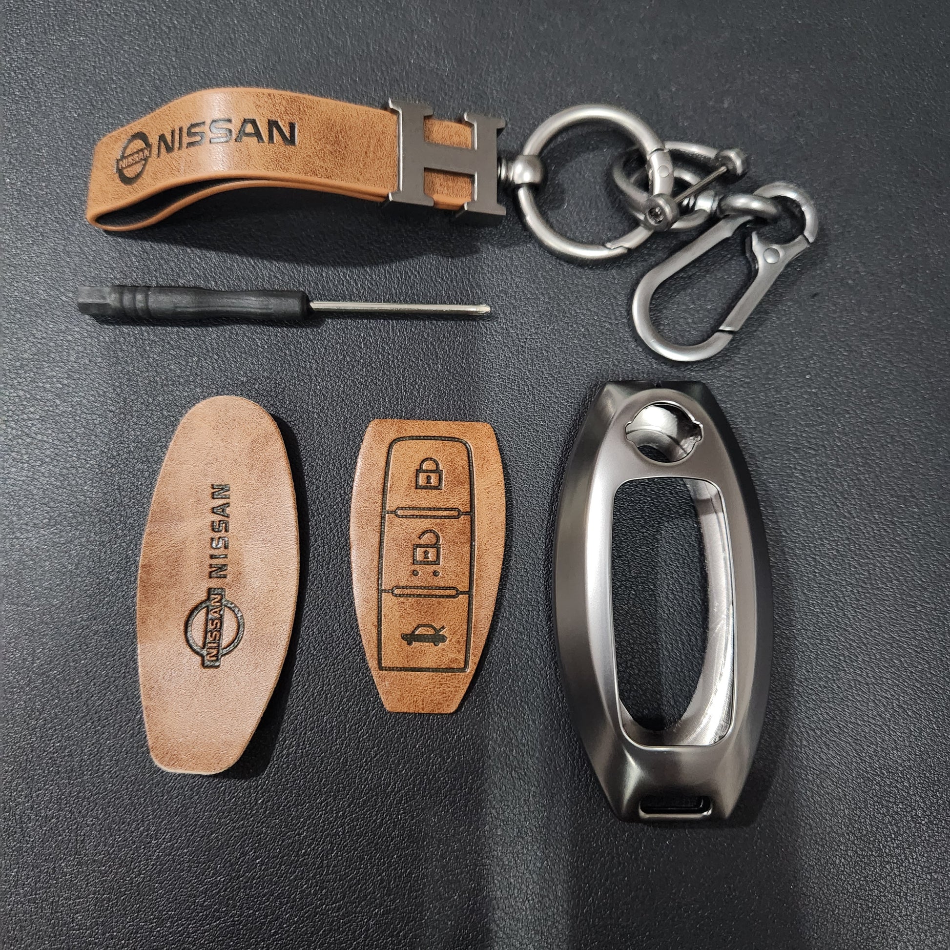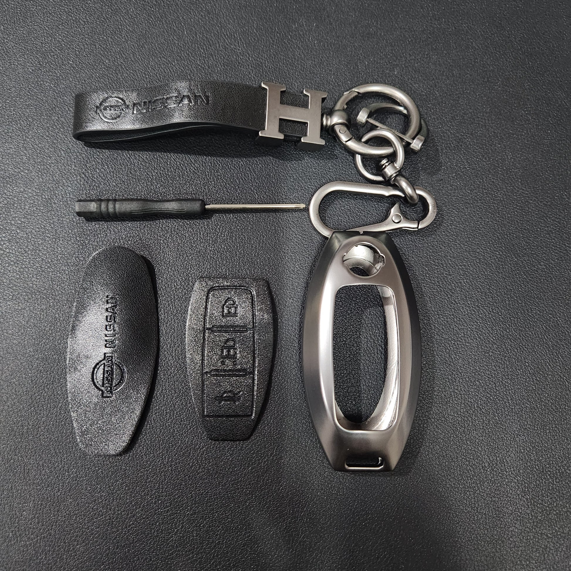 Nissan New Key Luxury Metal Alloy Leather Keycase with Holder & Rope Chain