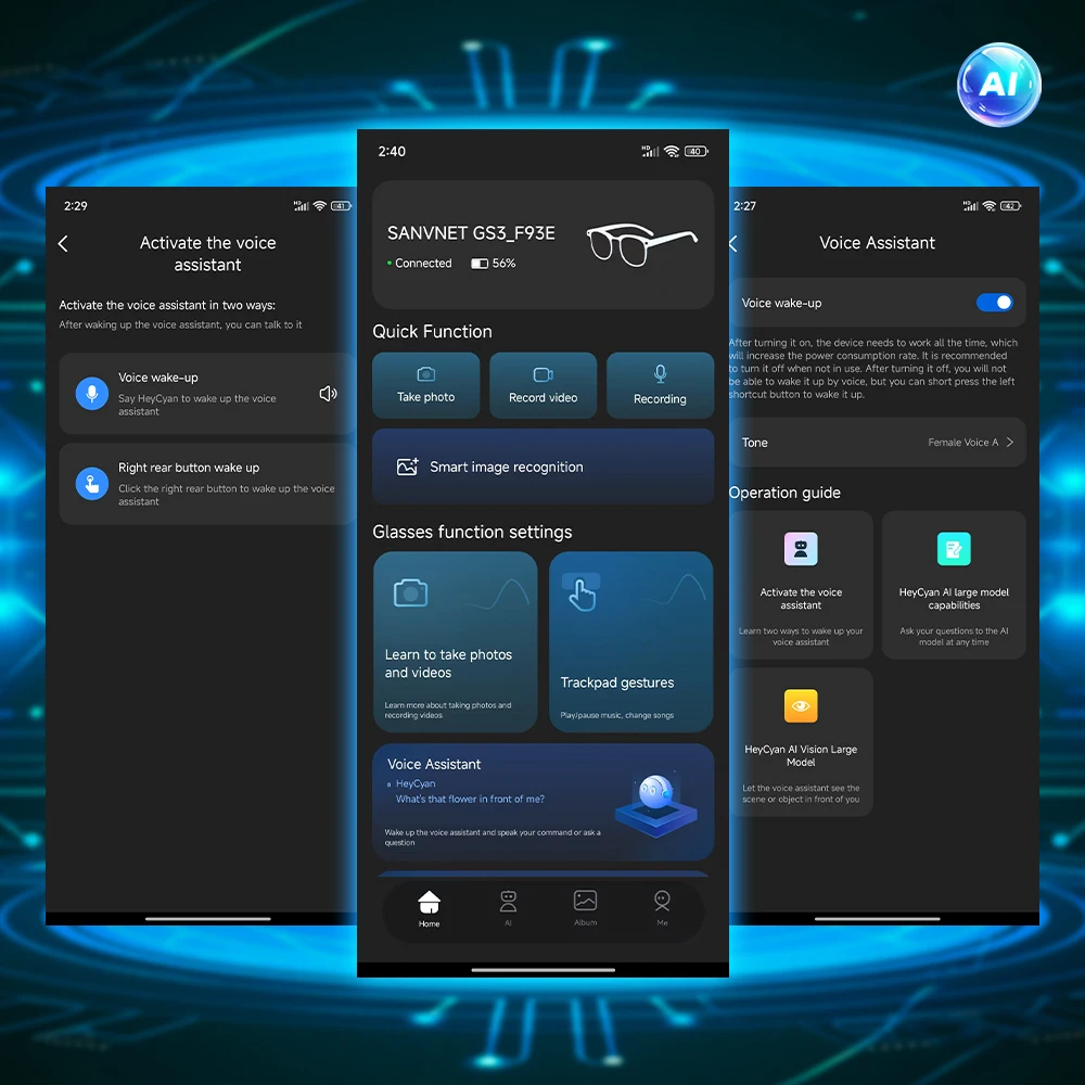 - Function : Music Player, Phone Call, Real-time translation, voice wake-up, receiving calls, shooting, Chat GPT