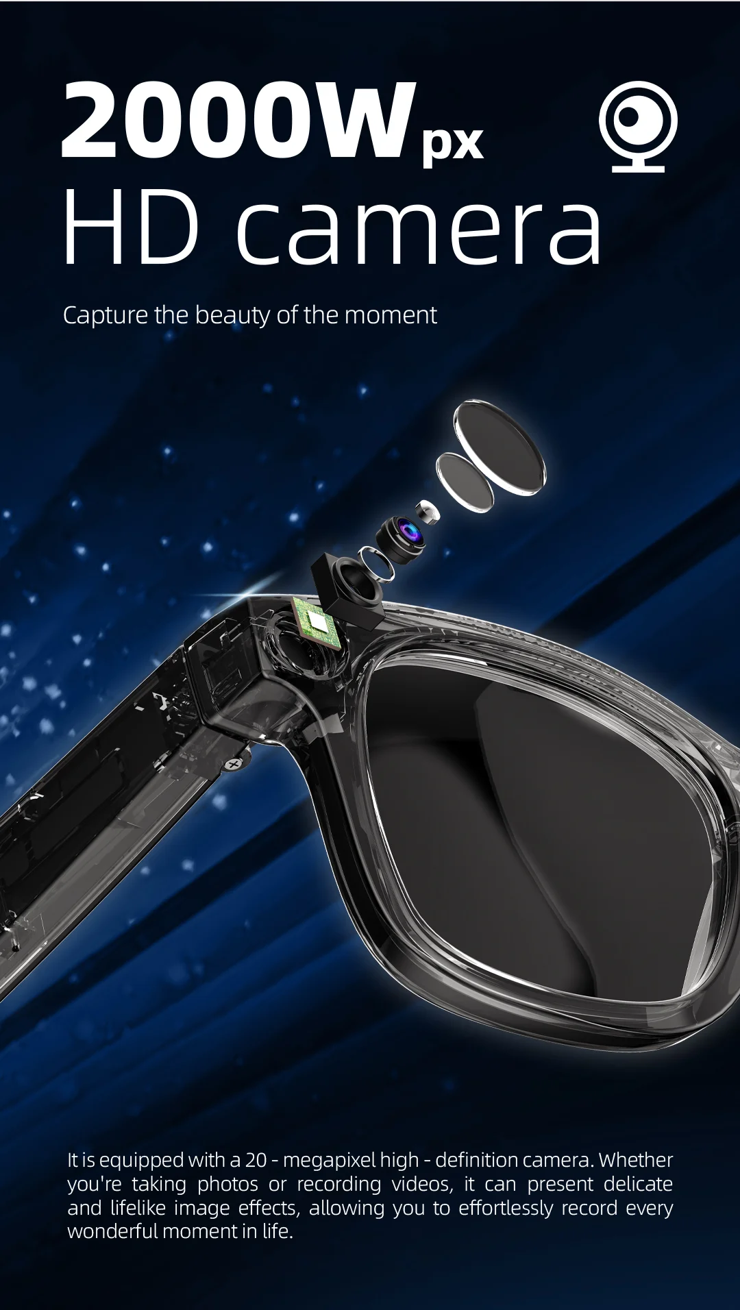 Smart Glasses with 8MP 4K Camera Wi-Fi Transmission Record BT Call Music Dual Lenses Smart Wearable Headset 2025