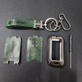 Our keycases are crafted from high-quality alloy, ensuring durability, protection, and a sleek finish. Some models also feature leather or carbon fiber accents for added style.