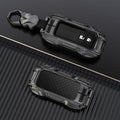 Our keycases are crafted from high-quality alloy, ensuring durability, protection, and a sleek finish. Some models also feature leather or carbon fiber accents for added style.