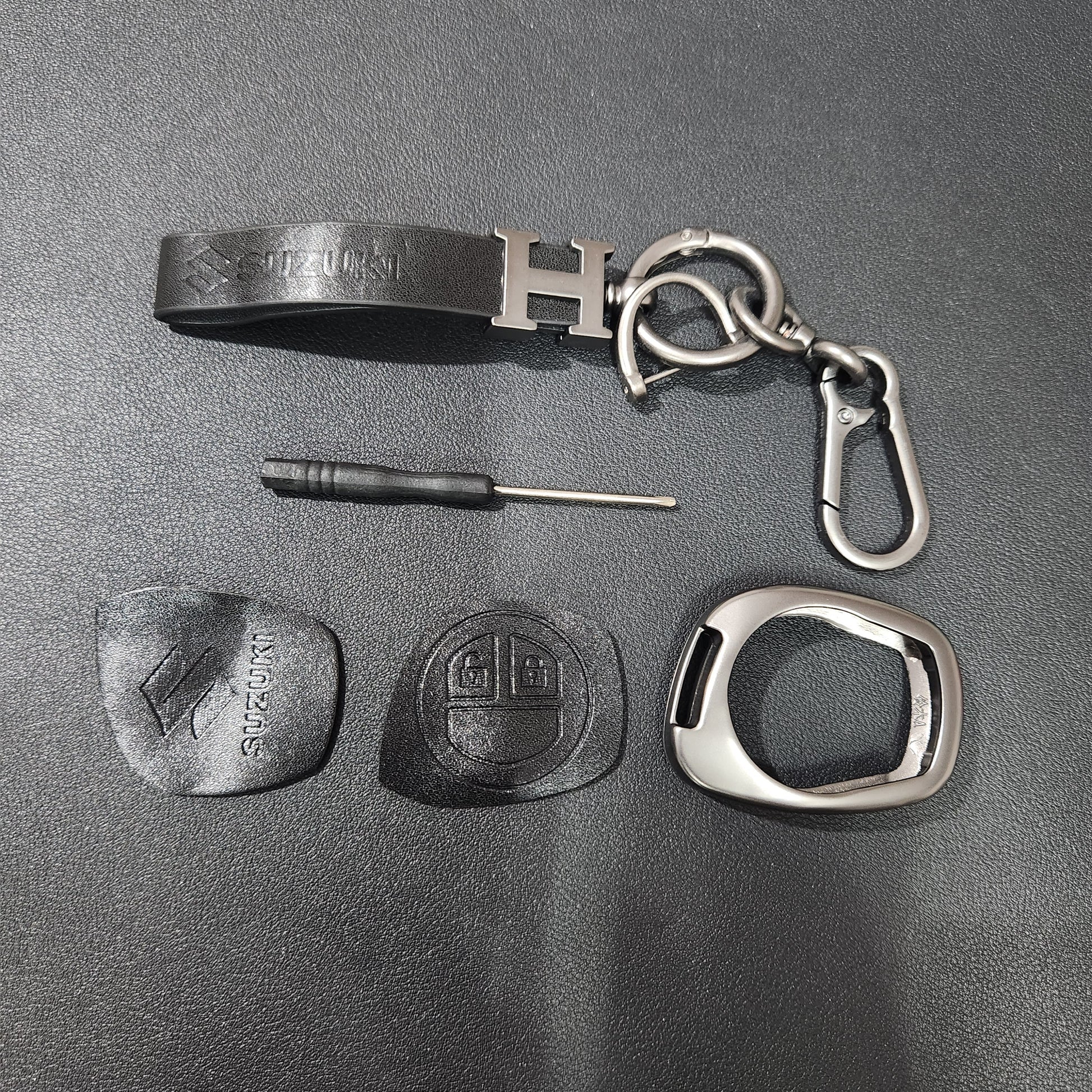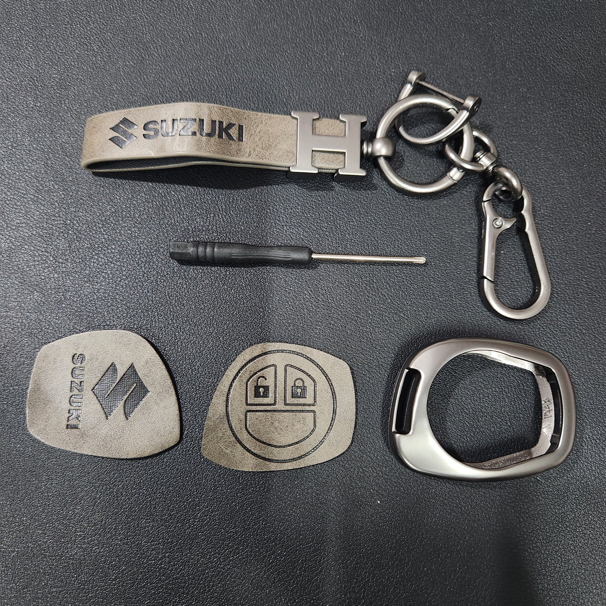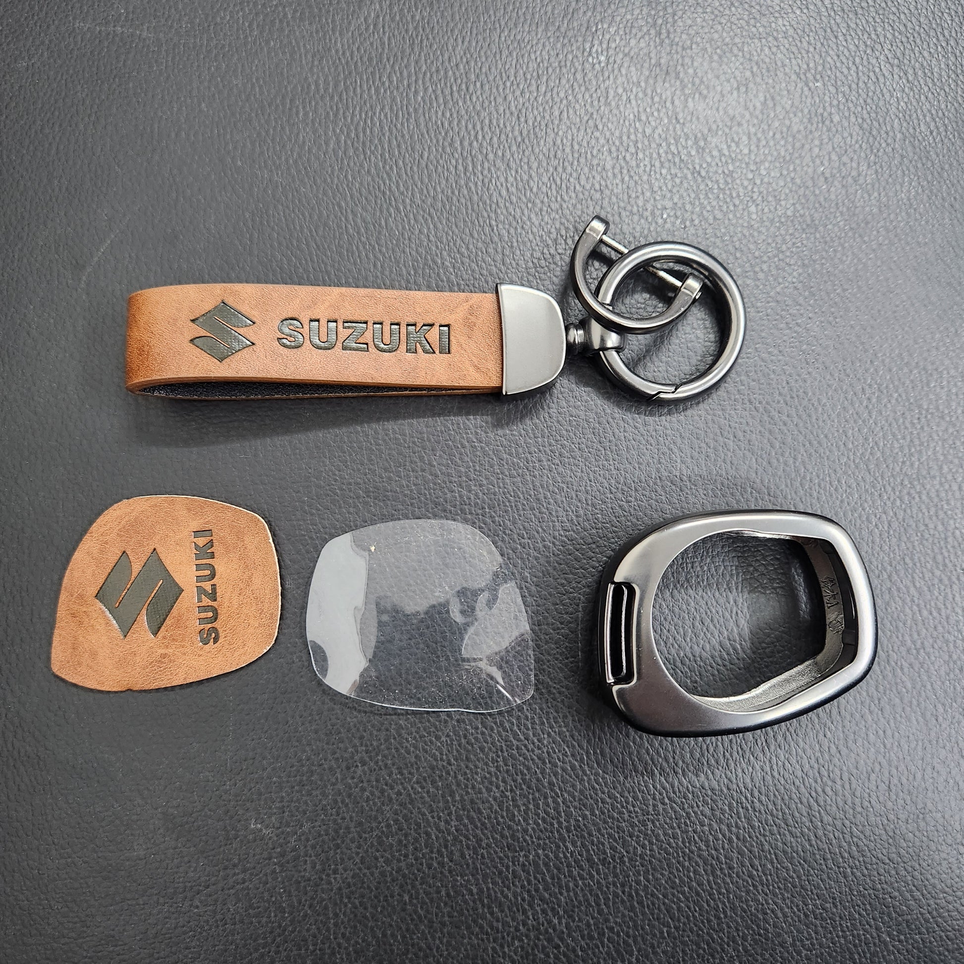 Suzuki Old Key Metal Alloy Leather Keycase with Holder & Rope Chain