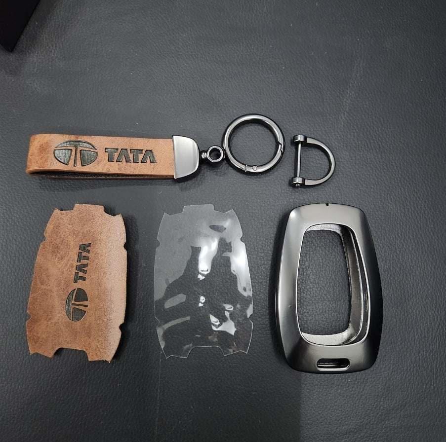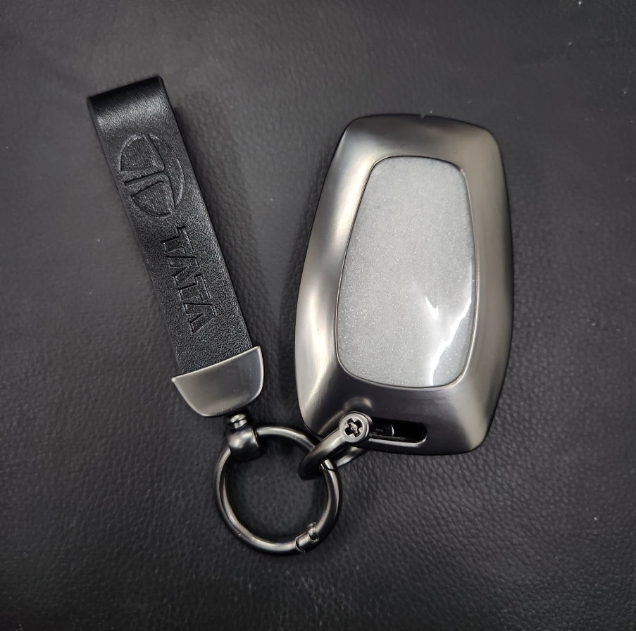 Tata Harrier/Nexon/Safari/Altroz New Key Luxury Metal Alloy Leather Keycase with Holder & Rope Chain
