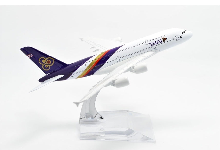 Celebrate the elegance of Thai Airways with this 16 cm A380 diecast model. Featuring the airline’s iconic purple and gold livery, this detailed replica captures the grandeur of the world’s largest passenger aircraft.