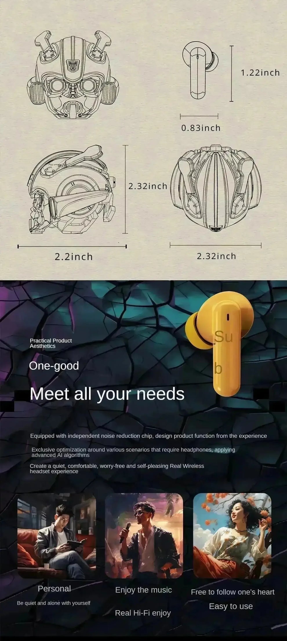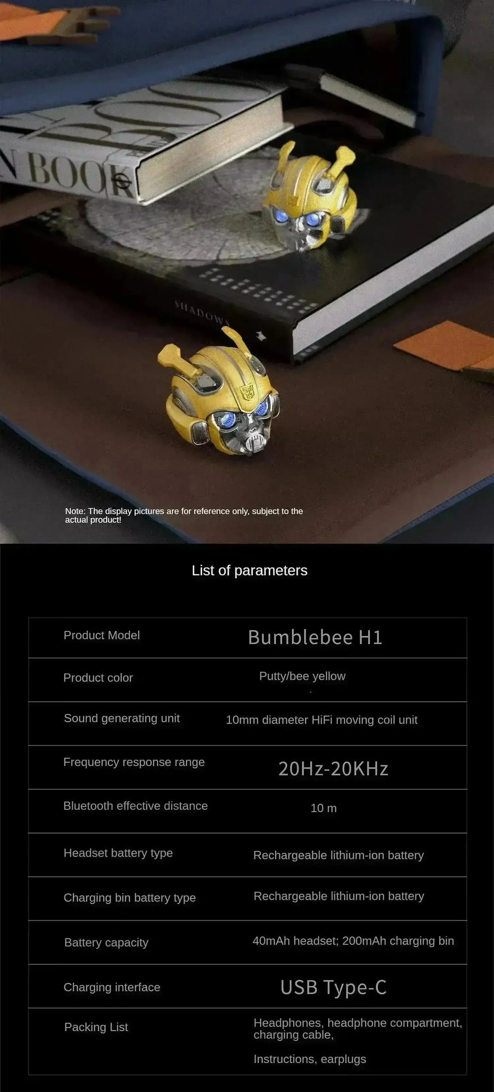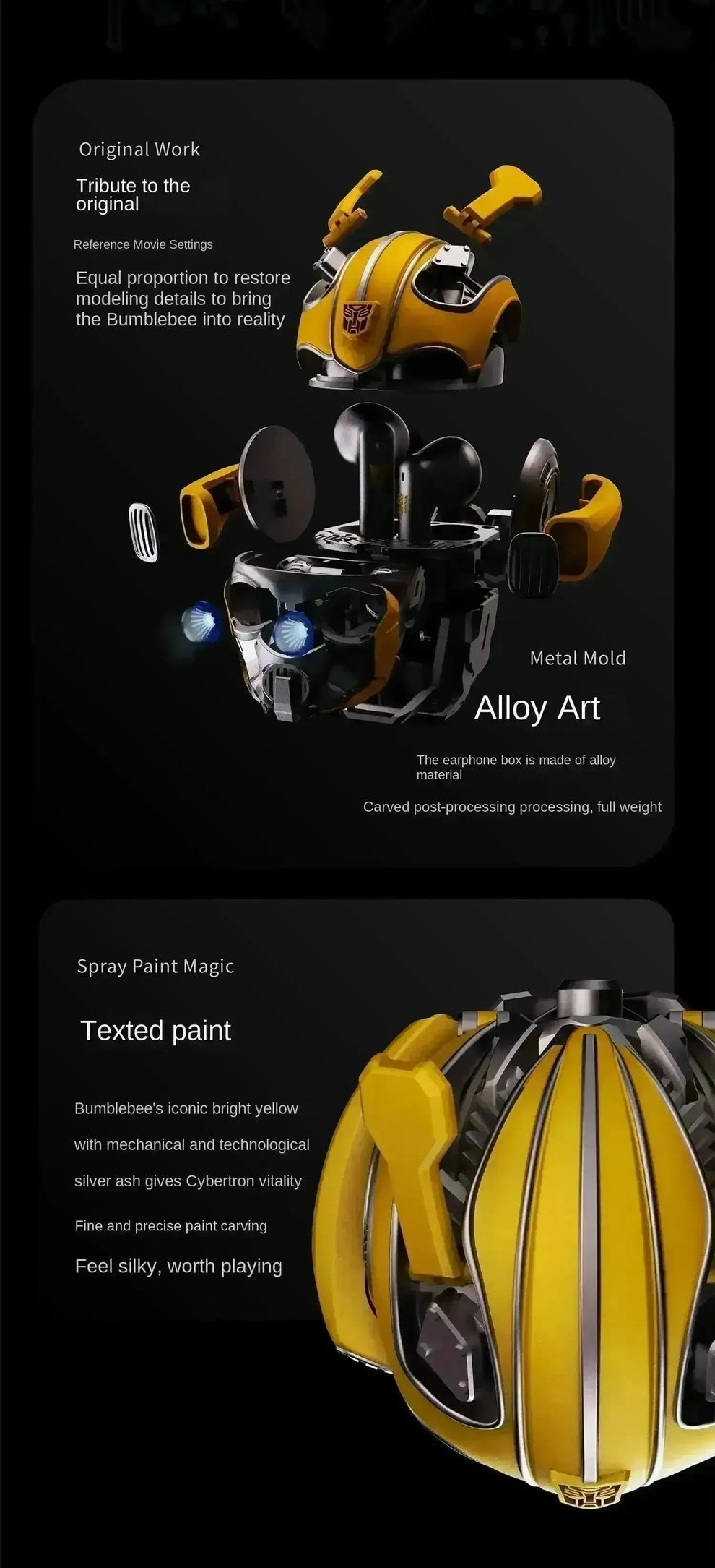 - Bumblebee-Inspired Design: The sleek black and yellow helmet design pays homage to the beloved Autobot, making these earbuds a must-have for any Trans4mers fan.