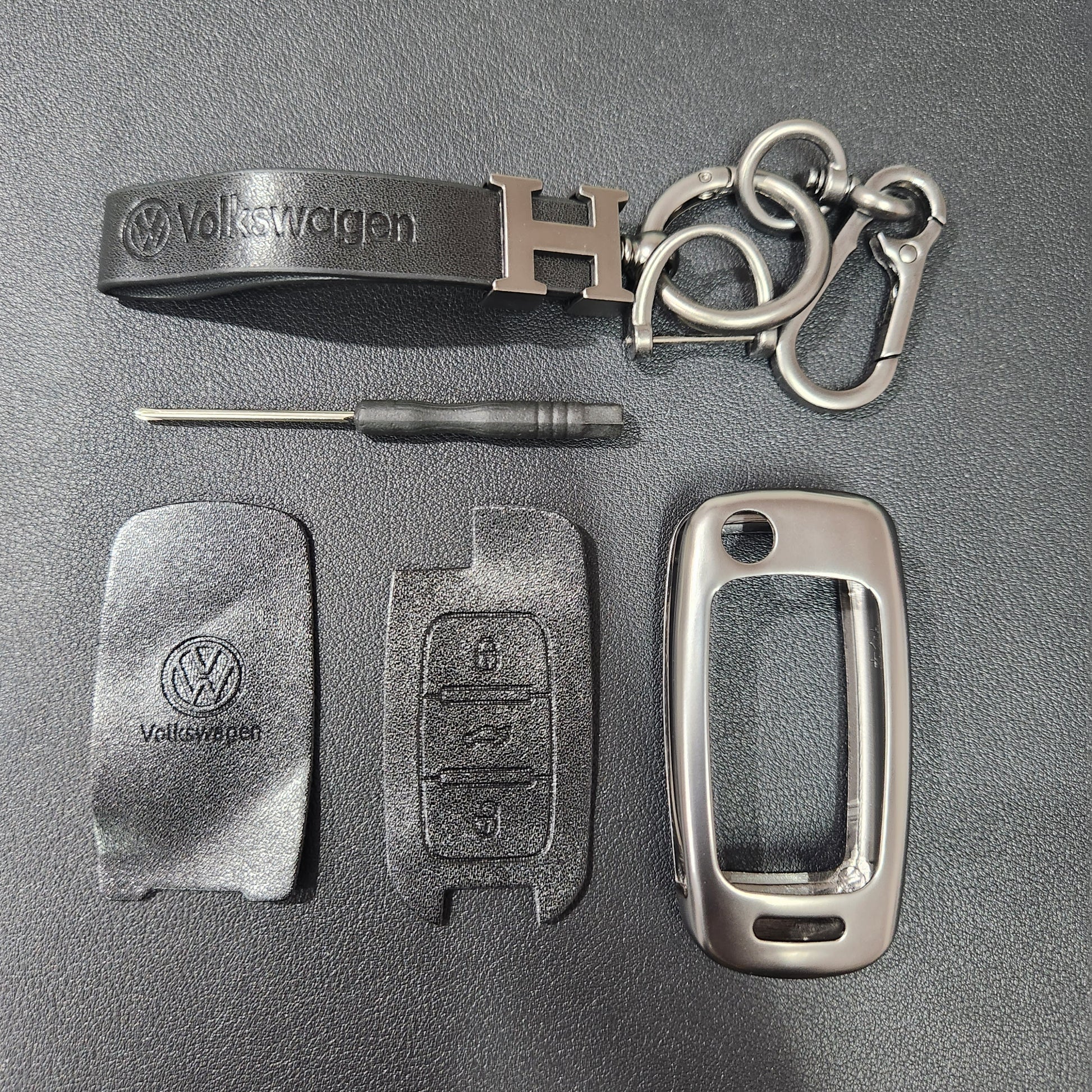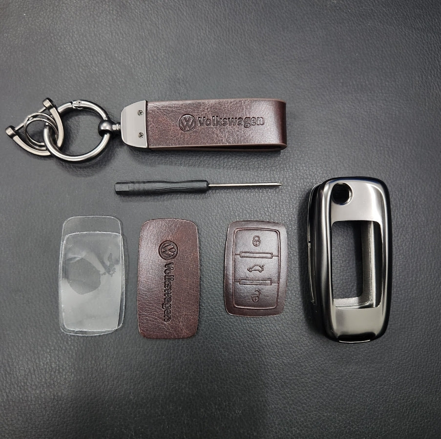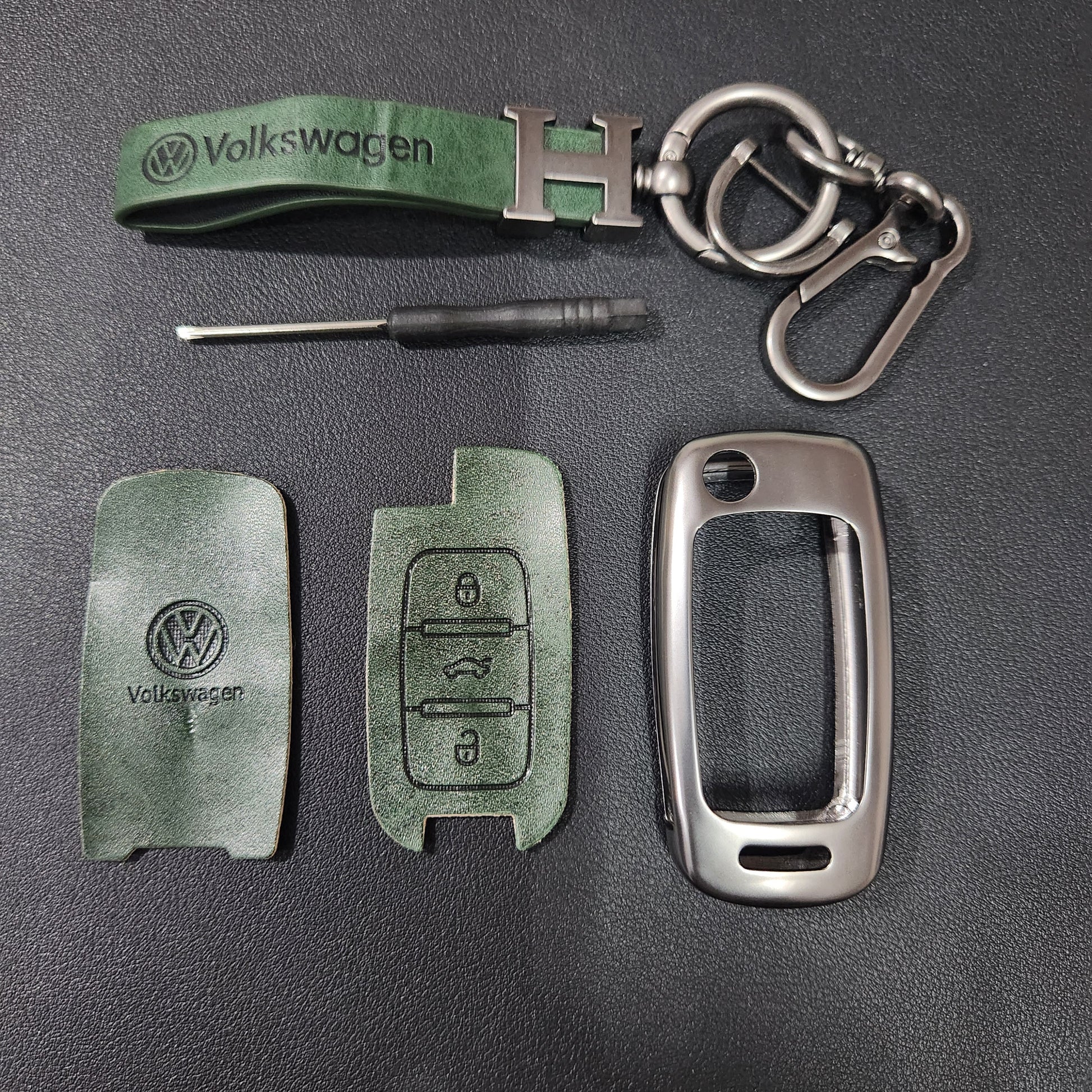 Volkswagen Old Flip Key Metal Alloy Leather Keycase with Holder & Rope Chain